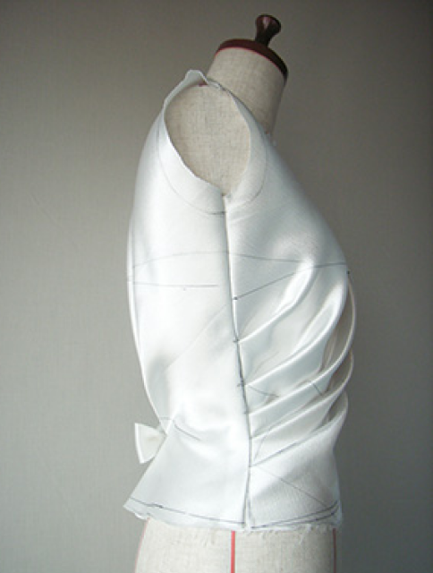 数字を用いる平面裁断に比べて、より感覚的であり、パリのオートクチュールなどでもこの手法によって裁断されています。