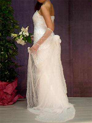 トレーンを広げると、生地の表面効果が浮き出てきます