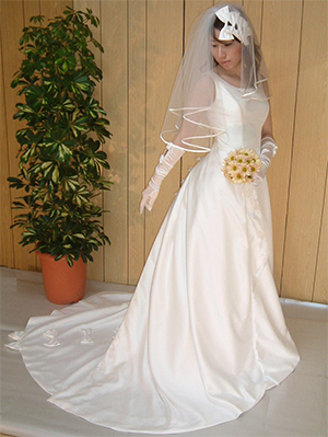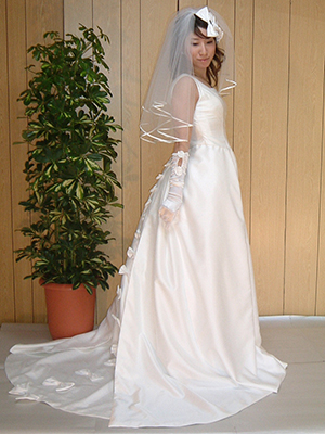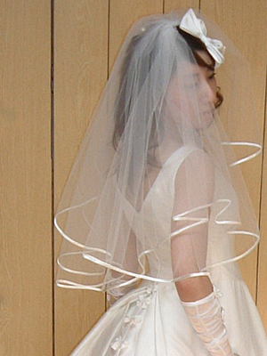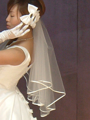 ヴェールにはブライダルサテンのパイピングをほどこして、女性らしくエレガントな印象に