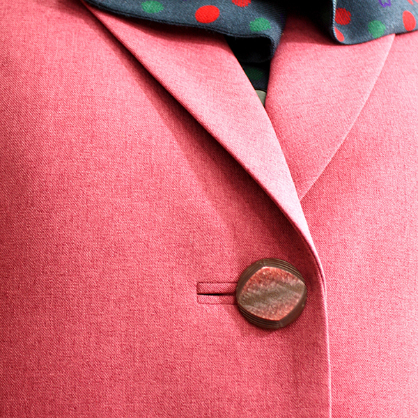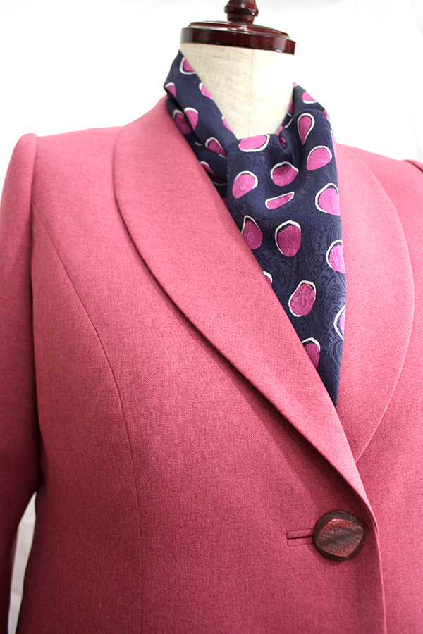 そしてそれに合わせられるショールカラーのジャケットは、女性らしくエレガントに、でもご旅行用で快適さも出すため、両脇にスリットを入れました。
