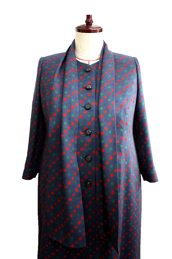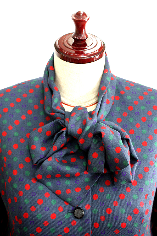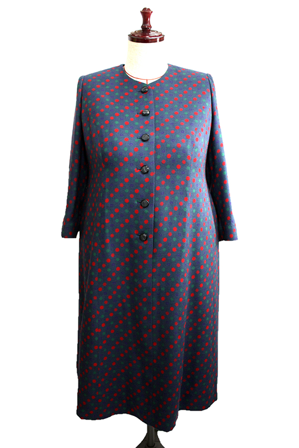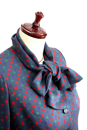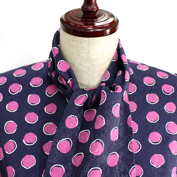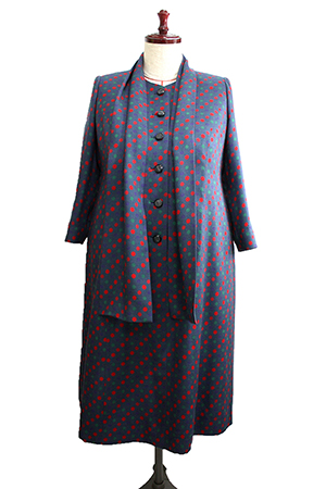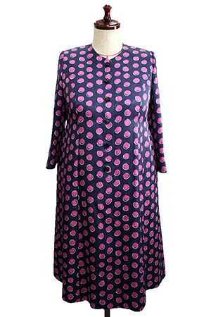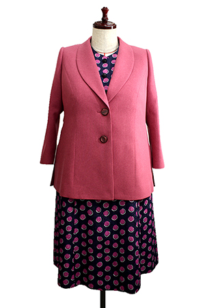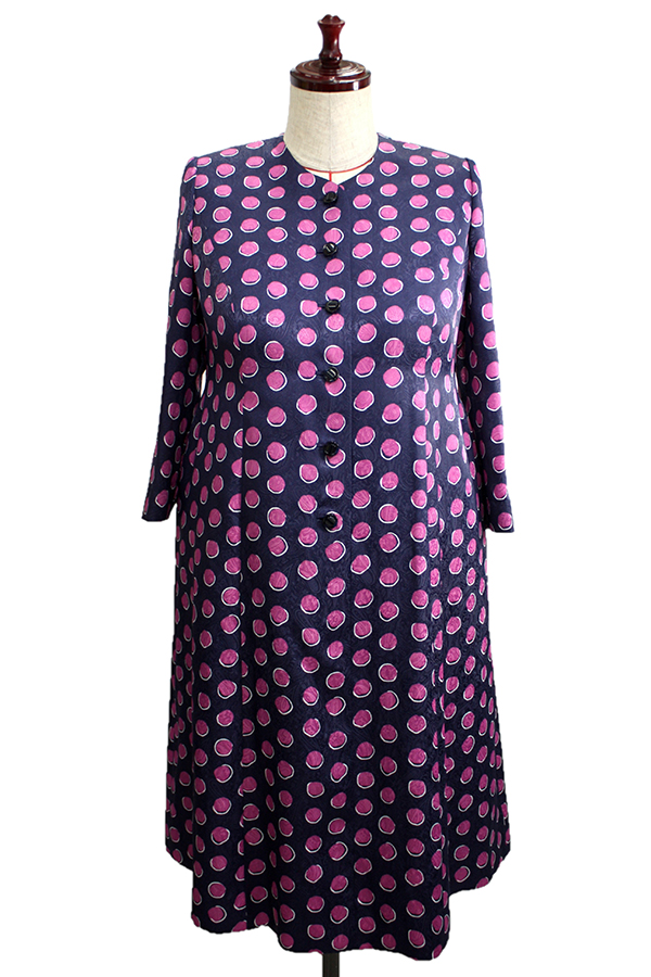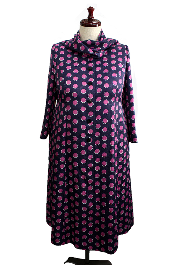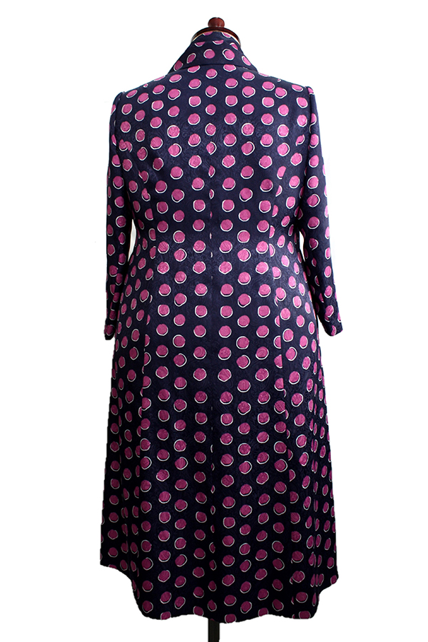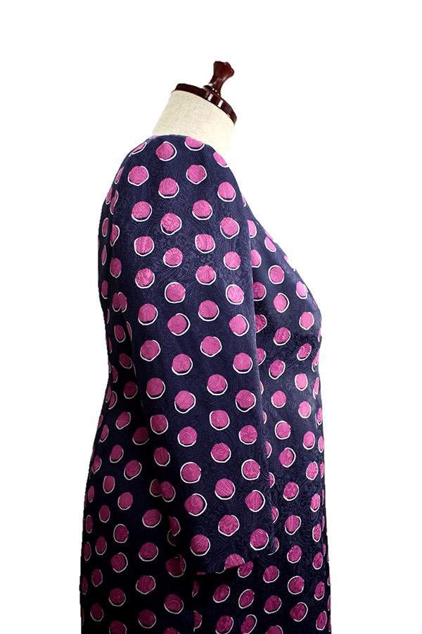 紺とピンクのジャガード織りの生地は張りと光沢があり、パーティーなどにもご着用頂けるワンピースになっております。