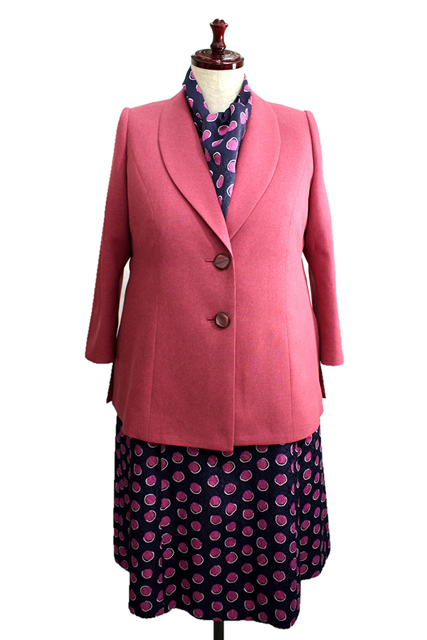 こちらのお客様はニセコからいらっしゃいました。ご旅行用にと、色合いの綺麗なサーモンピンクのジャケットとそれに合わせられるワンピースを2着ご注文されました。ワンピースには共布でストールを作らせて頂き、いろんなアレンジをしてご着用頂けるように致しました。