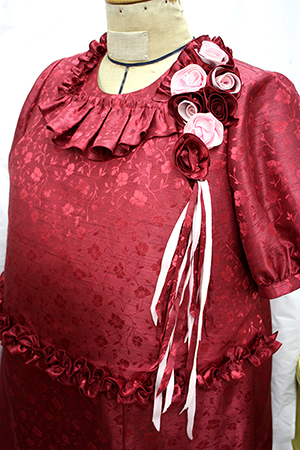 こちらのお客様は紋別からお母様とお姉様とご来店され、お姉様の結婚式の時にご参列用にとドレスをご注文されました。お嬢様に一番お似合いになるお色の生地をお選び頂き、お嬢様が「可愛いものが大好き」とおっしゃるので、私も「可愛いドレスにしますね」とお約束させて頂きました。
