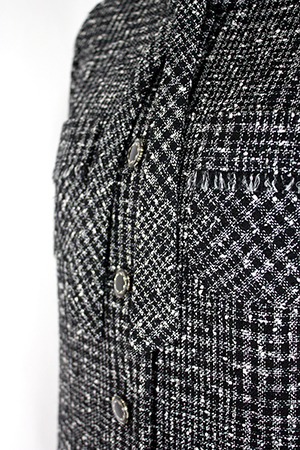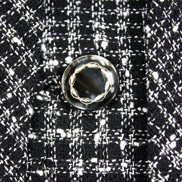 こちらのお客様は長年オーダーのお洋服を着ていらしたので、釦(ボタン)の選び方がとても上手でいらっしゃって、この黒×白のツイードの生地にとても良く合う釦を選ばれました。