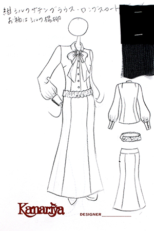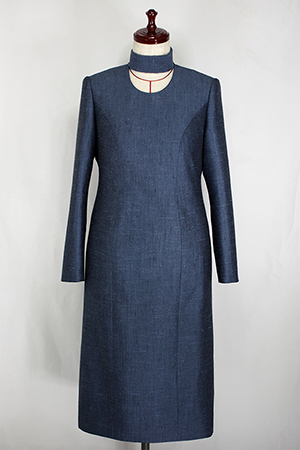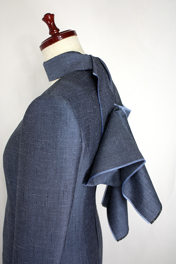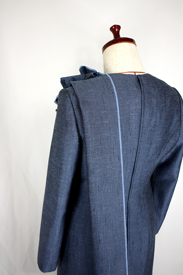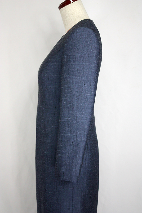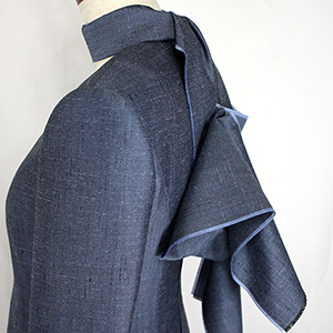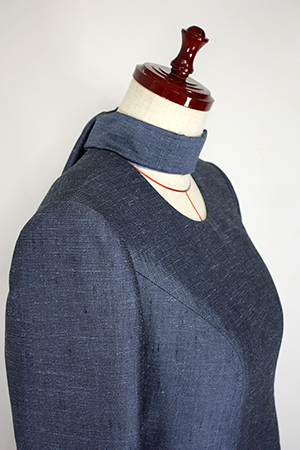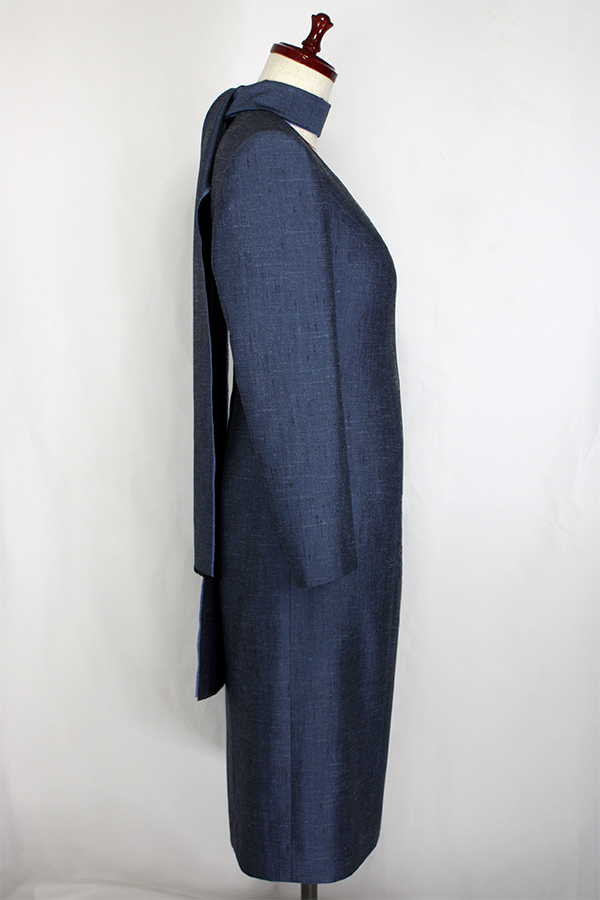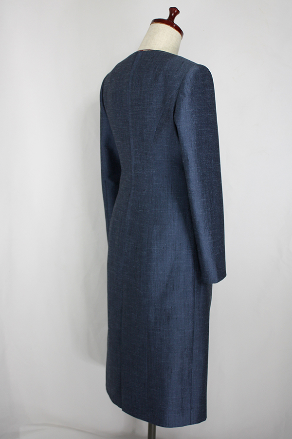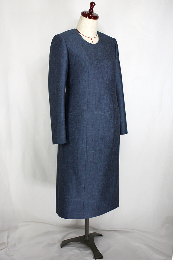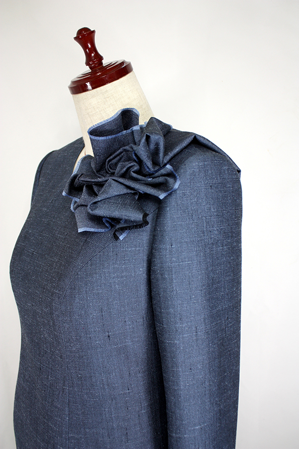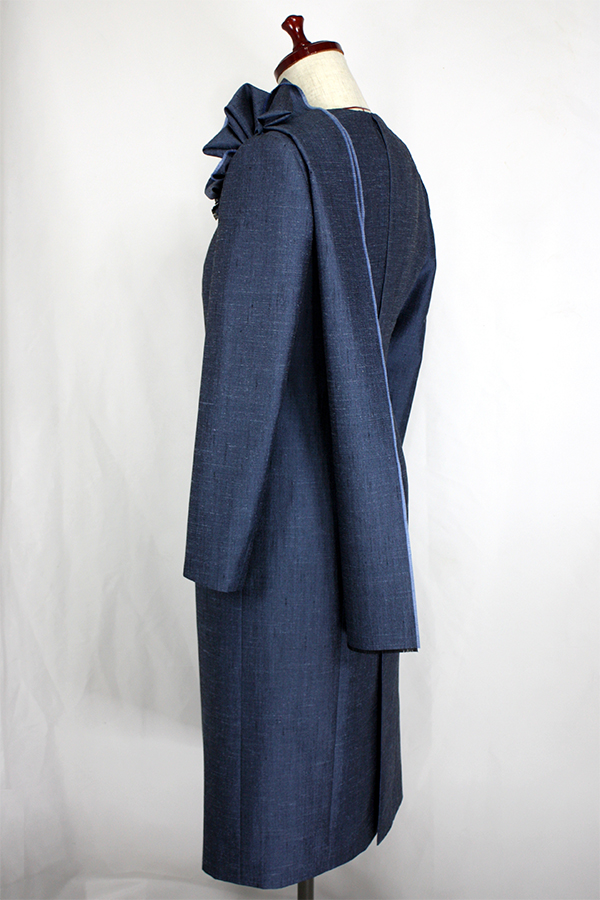 こちらのお客様はこのワンピースの前にも、シルクのリボンカラーのブラウスと、ドレープのベルトを取り外せるヒップハングのロングスカートのフォーマルウェア、そのあとにはマチ付きのキモノスリーブのジャケットとワンピースのブラックフォーマルのアンサンブルをご注文されました。お背が高くてとてもお美しく、立ち居振る舞いも素敵でいらっしゃるので、お納めのご試着の時にはまるでパリコレのランウェイから降り立たれたようなお美しさで、ぽ~~~っと見とれてしまいました。こちらのお洋服も撮影せずにお納めしたため、皆様に見て頂けずとても残念です。
