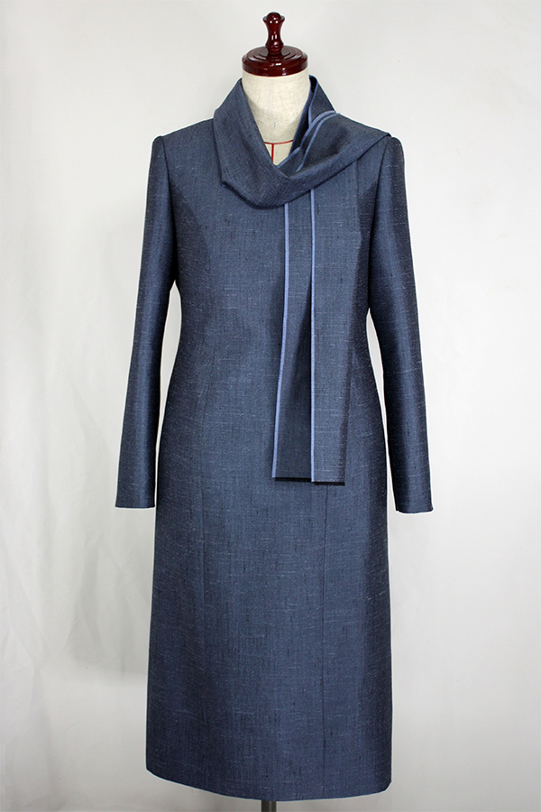 上品な光沢のあるウールシルクのワンピースに共布のストールをお付けして