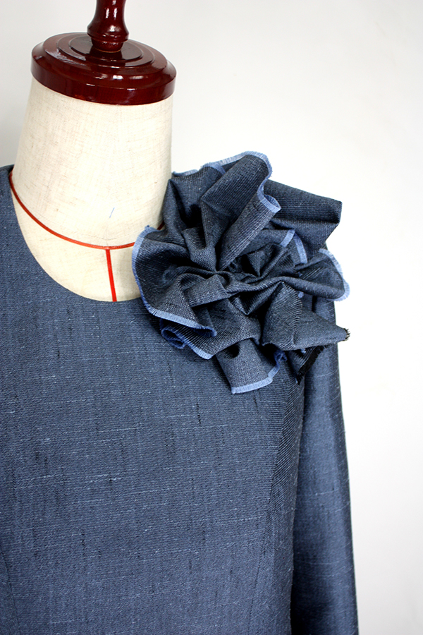 ウールシルクの上品な光沢があるシャンタンの生地で、およばれ用のワンピースをオーダーされました。