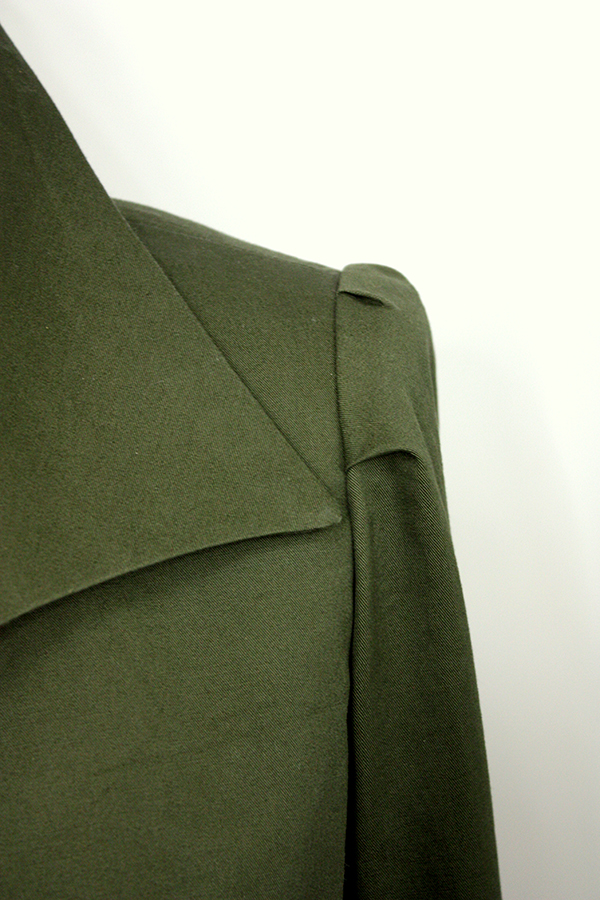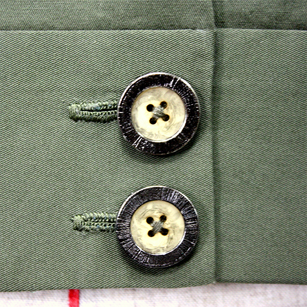 洋服のアクセントになる大切な釦(ボタン)は、生徒さんのお母様が着なくなった洋服から外して、このジャケットに付けられました。モノを大切にするとてもお優しいお心づかいが伝わってきますね。そしてなんと、この釦ホール、生徒さんが何度も練習した後にご自分でかがった釦ホールです。これからも回数を重ねるごとに上達されていくと思います。